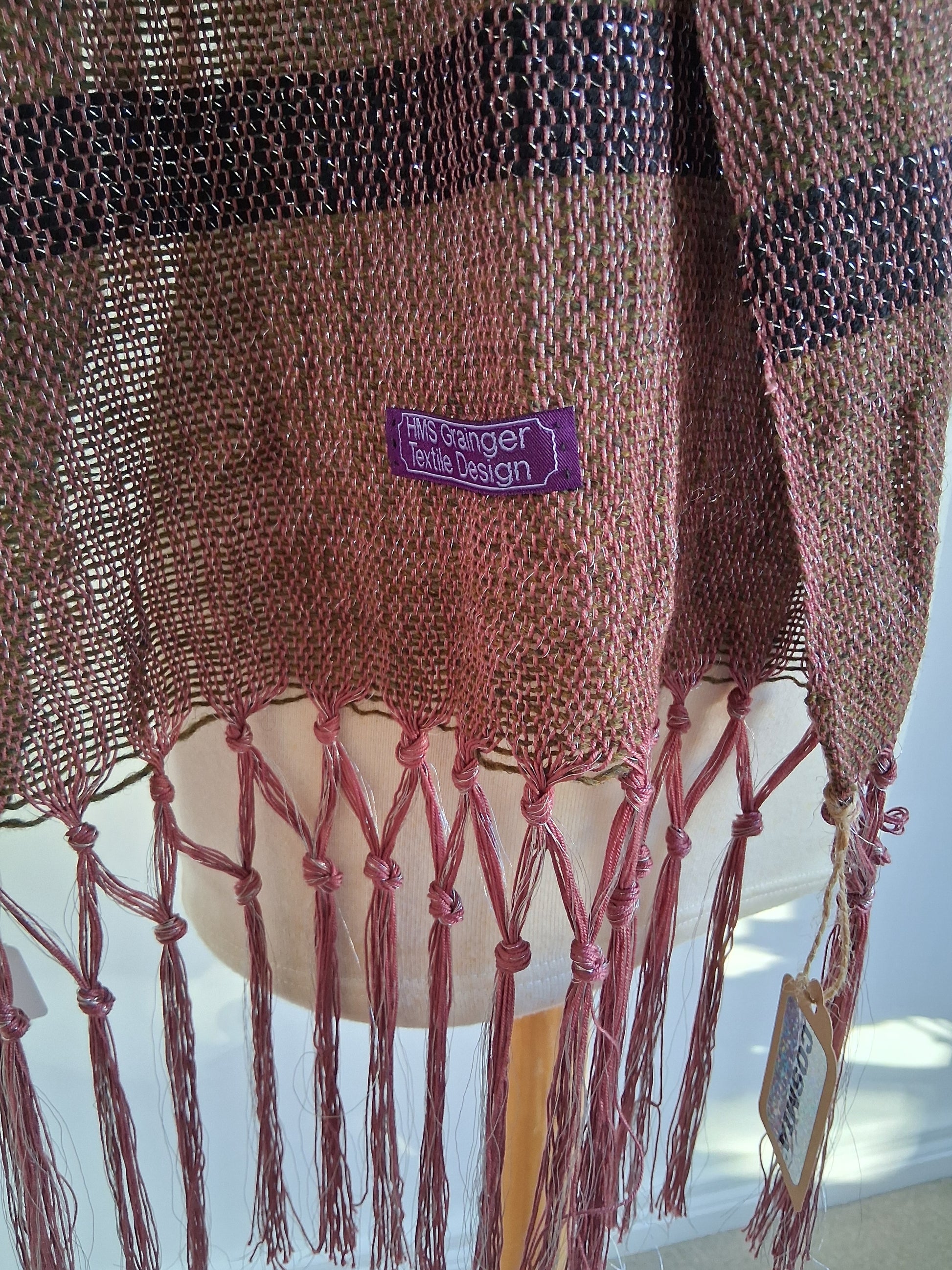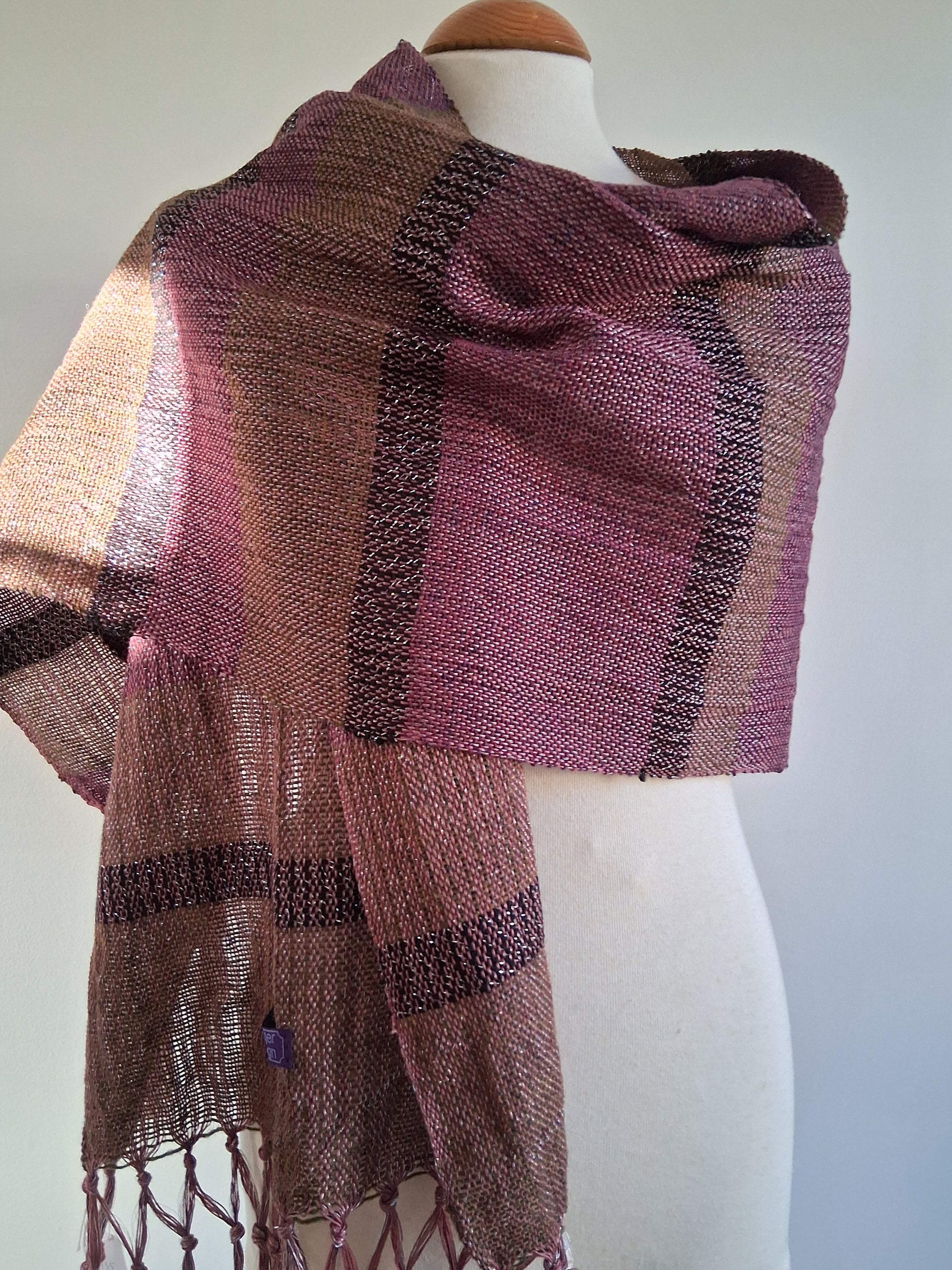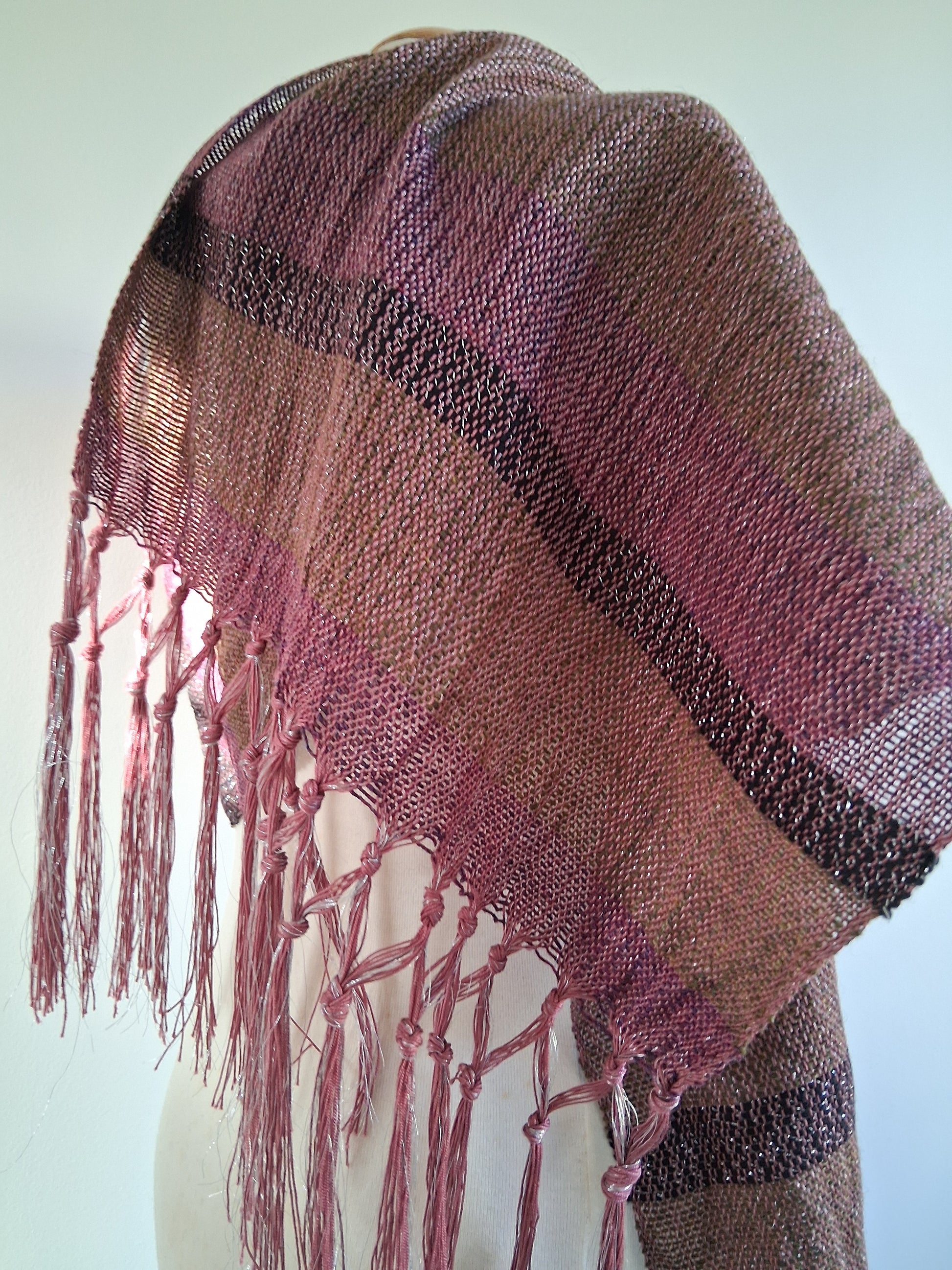 Cosmia Collection ... see the silver sheen in this design. Like wearing psychedelic camouflage, this piece is Khaki, Mulberry with a stripe of noir.