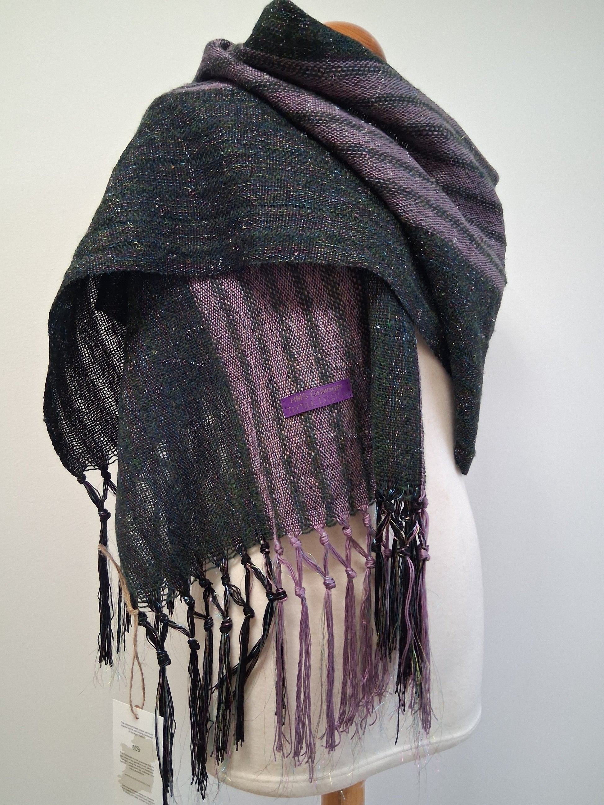 Donegal yarns deeply inspired these vibrant colour ways. This deep reflection of dark peacock hues with a lilac flair is slightly felted by design, making them a comfortable, joy to wear, with iridescent embroidery thread throughout.